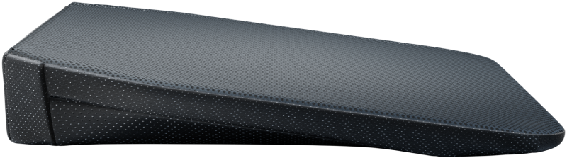 The shape — with contoured undersides that fit your seat bolsters — ensures both a snug fit and keeps the top surface of the wedge flat. The thin front edge means no ridge to dig into your thighs.